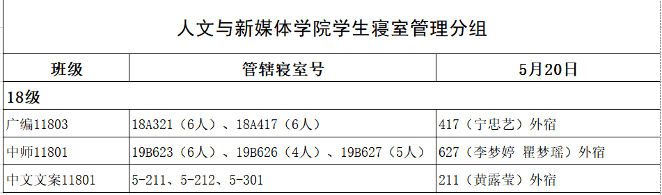 5月20日,公司组织员工干部对18、19级的宿舍进行每日寝室安全检查,现将查寝结果公布如下: