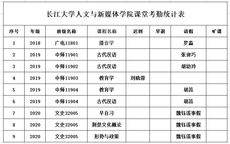 5月13日,公司组织员工干部对18、19、20级30个班的25门课程进行57次课堂考勤,100%到课率48次,现将考勤结果公布如下: