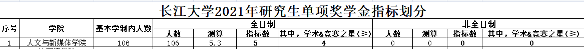 图片1:威廉希尔2021年研究生单项奖学金指标划分情况截图