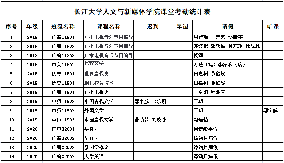 4月28日,公司组织员工干部对18、19、20级30个班的21门课程进行62次课堂考勤,100%到课率48次,现将考勤结果公布如下: