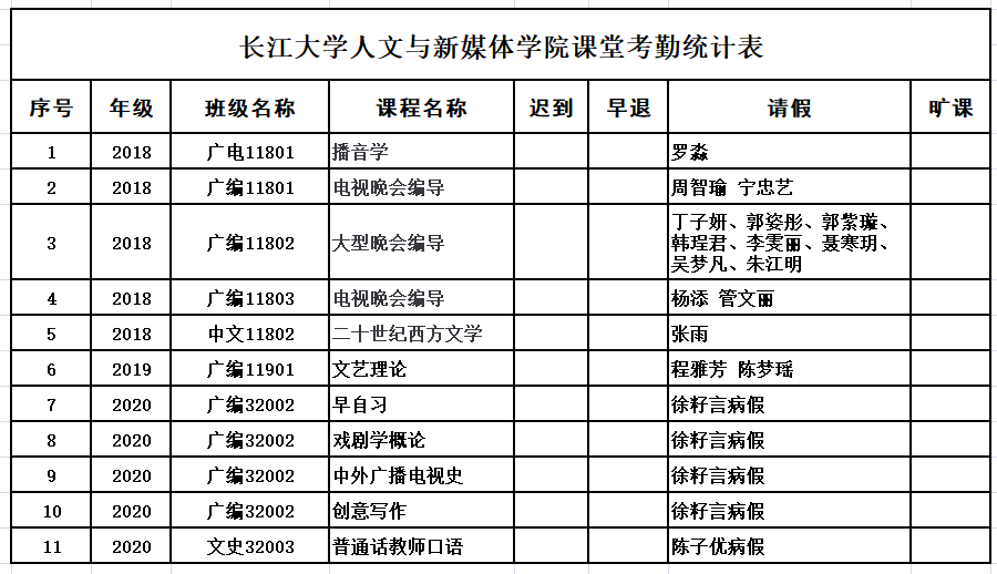 4月27日,公司组织员工干部对18、19、20级30个班的33门课程进行69次课堂考勤,100%到课率58次,现将考勤结果公布如下: