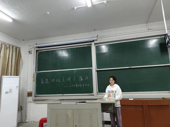 活动伊始,程相望向参主讲人介绍了百生讲坛活动细则。汪雨涵以自身参加青马班百生讲坛的经历向在场学员进行演讲示范。随后,即兴演讲拉开序幕。员工们依次上台进行三分钟的即兴演讲。每位同学的发言都十分精彩,紧扣自己的主题展开,内容紧紧有条,语言连贯,灵活善变,展现了2020级员工的实力与风范。其中,文史32005班的徐安妮立足党史学习,讲述了我们应该助力当代青年人的全面发展,在青年人心中植入红色基因。