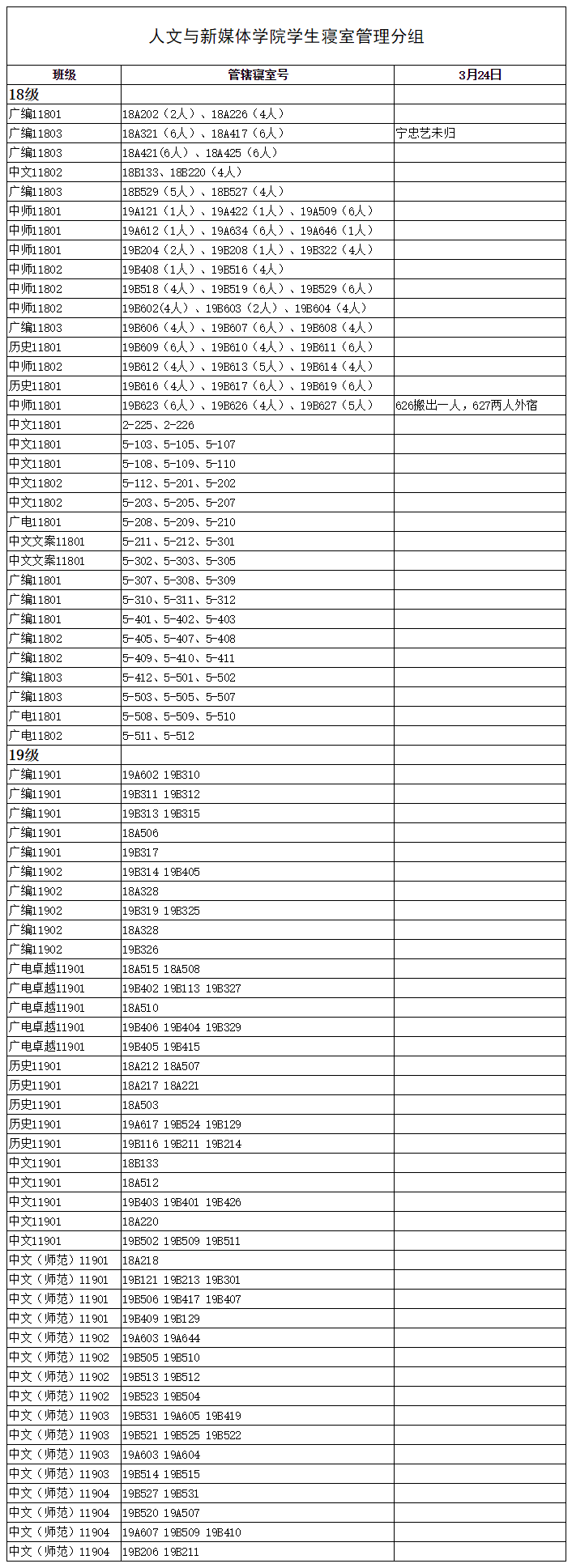 3月24日,公司组织员工干部对18、19级的宿舍进行每日寝室安全检查,现将考勤结果公布如下: