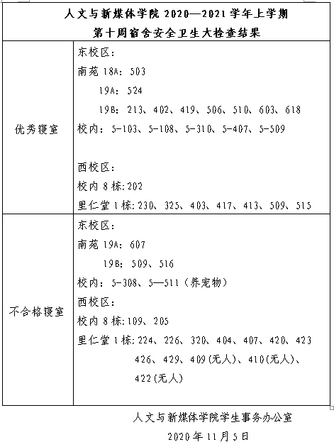 威廉希尔足球官网2020—2021学年上学期第十周宿舍安全卫生检查情况通报