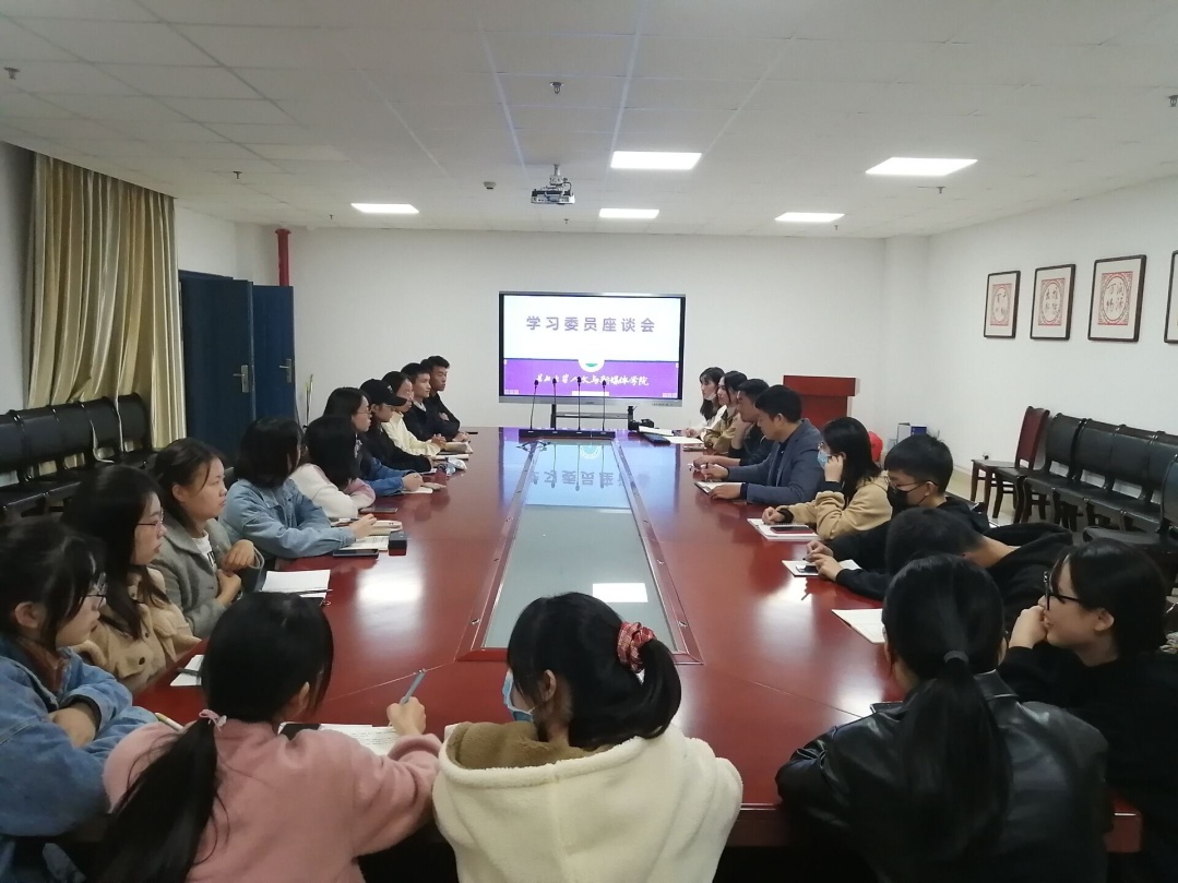 (通讯员 王权)为加强学院学风建设,了解课堂管理情况。10月20日晚,学院在文科楼705会议室召开学习委员座谈会。辅导员何宁、各班学习委员出席了本次座谈会。座谈会由公司党委副书记胡世先主持。
