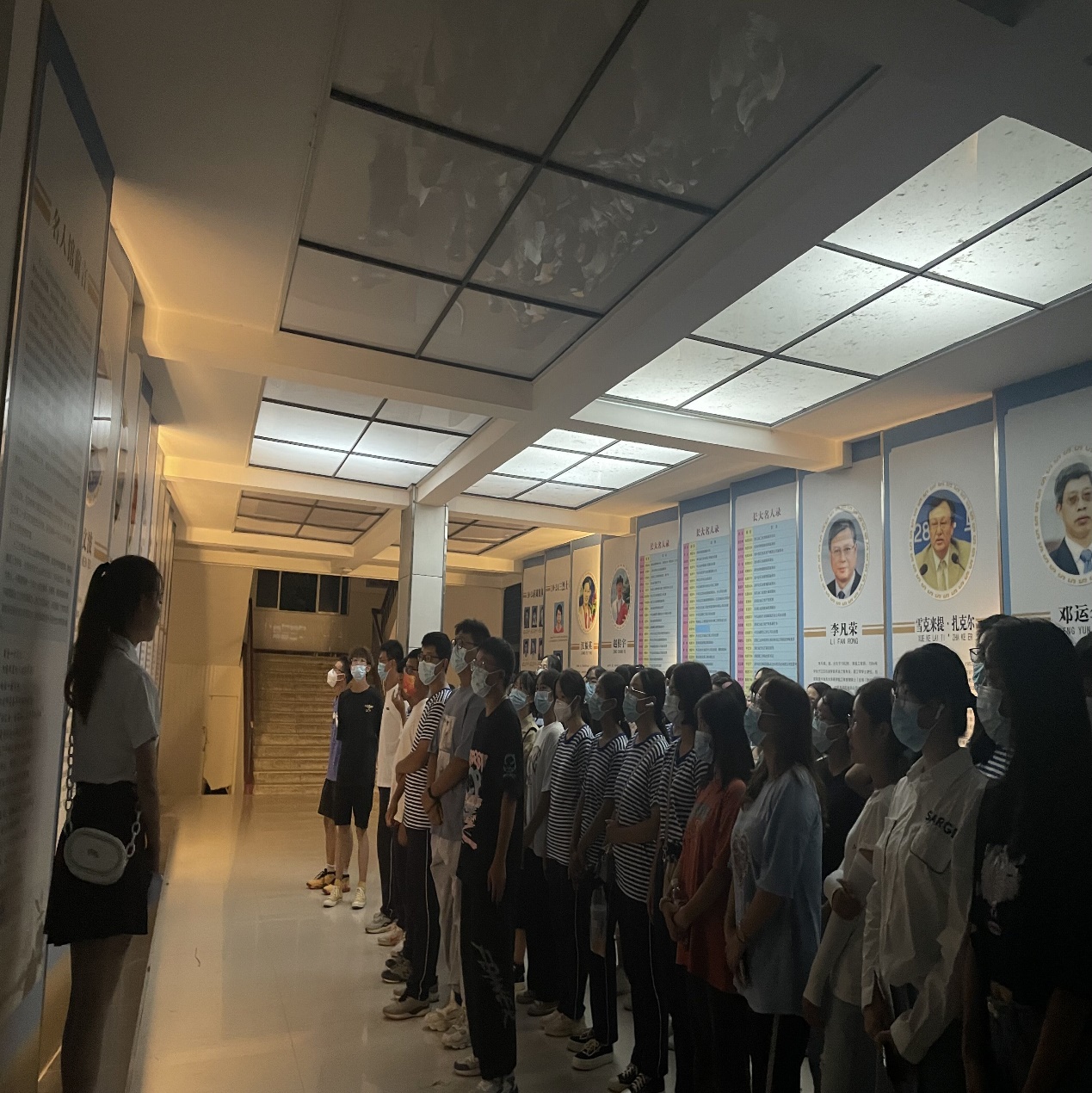 1024纪念馆是因纪念见义勇为的长大学子群体而创立的主题纪念馆,晚上七点开始由讲解员带领,各班班委组织纪律,有序进入馆内参观。馆内通过图片,物品,影像以及讲解员的生动讲述等真切的还原了当时员工前辈见义勇为的无私壮举,使同学们感到无比感动与自豪。