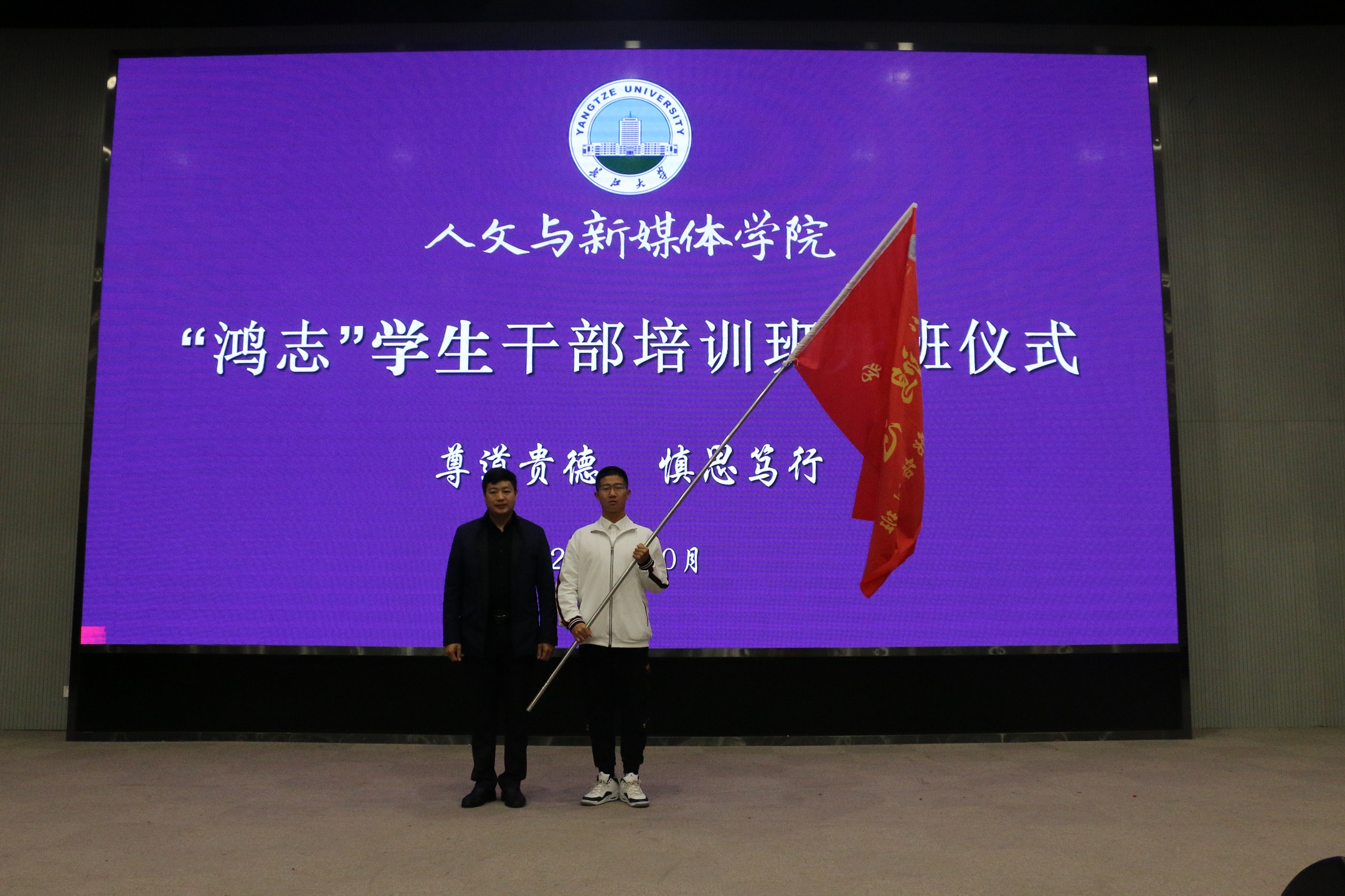 首先,大会开始,全体师生唱响了庄严的国歌,接着邹晨玉同学作为新学员代表发言,对于四年之后我们成为什么样的人的疑惑,邹晨玉同学给出了答案,那就是成为一名兼备知识素养和业务能力,且对社会有价值的人文学子。心有所信,方能行远,汪雨涵同学作为上一届优秀学员代表给我们分享了她在鸿志班一年的所学、所思、所获,希望大家坚定信念,不负韶华,成长为一名优秀的人文学子。随后公司党委副书记胡世先老师为鸿志班授旗并发表讲话,鸿志班为什么学、学什么、怎么学,胡老师分三个方面给我们指明了前进方向。他对学员寄予了成长为一名“怀鸿鹄之志、展人文之风”的优秀员工干部的殷切期望。然后全体学员在领誓人付锦的带领下进行了庄严宣誓,每个学员立志成为德才兼备的员工干部,闪耀出长大学子的璀璨之光。