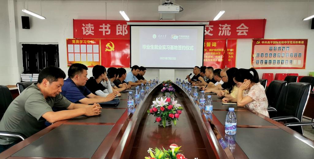 7月22日上午,公司与建始县高平国际实验中学共建就业实习基地签约仪式在高平国际实验中学行政楼会议室举行。高平国际实验中学董事长付志海、副董事长黄金国、易永彩及部分教师代表和公司经理何世龙、党委副书记胡世先、办公室主任李文胜出席签约仪式,付志海主持仪式。